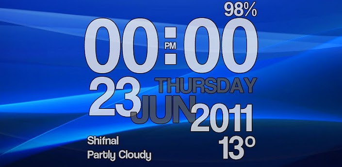 The EZ Clock Wallpaper Pro live wallpaper displays the time, date and battery life of your device, along with your location and weather information. It displays this in a stylish yet simple layout, allowing you to make it personal by adding your own background image and changing other settings to suit your style.